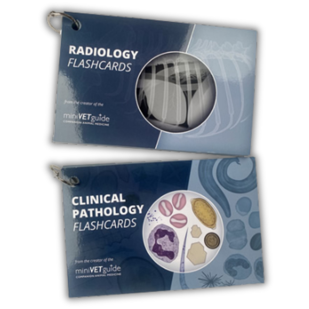 این مجموعه شامل فلشکارتهای «کلینیکال پاتولوژی» و «رادیولوژی» است. در فلشکارتهای کلینیکال پاتولوژی miniVET guide، رایجترین ساختارهای مهم بالینی که هنگام بررسی نمونههای خون، ادرار و مدفوع زیر میکروسکوپ میبینیم، با کیفیتی خیلی بالا و دقیق تصویرسازی شدهاند. فلشکارتهای رادیولوژی هم با تصاویر فوقالعاده باکیفیت و نکات کلیدی کاربردی همراه هستند تا تفسیر رادیوگرافیهای قفسه سینه و شکم را برای شما سادهتر و کماسترستر کنند.